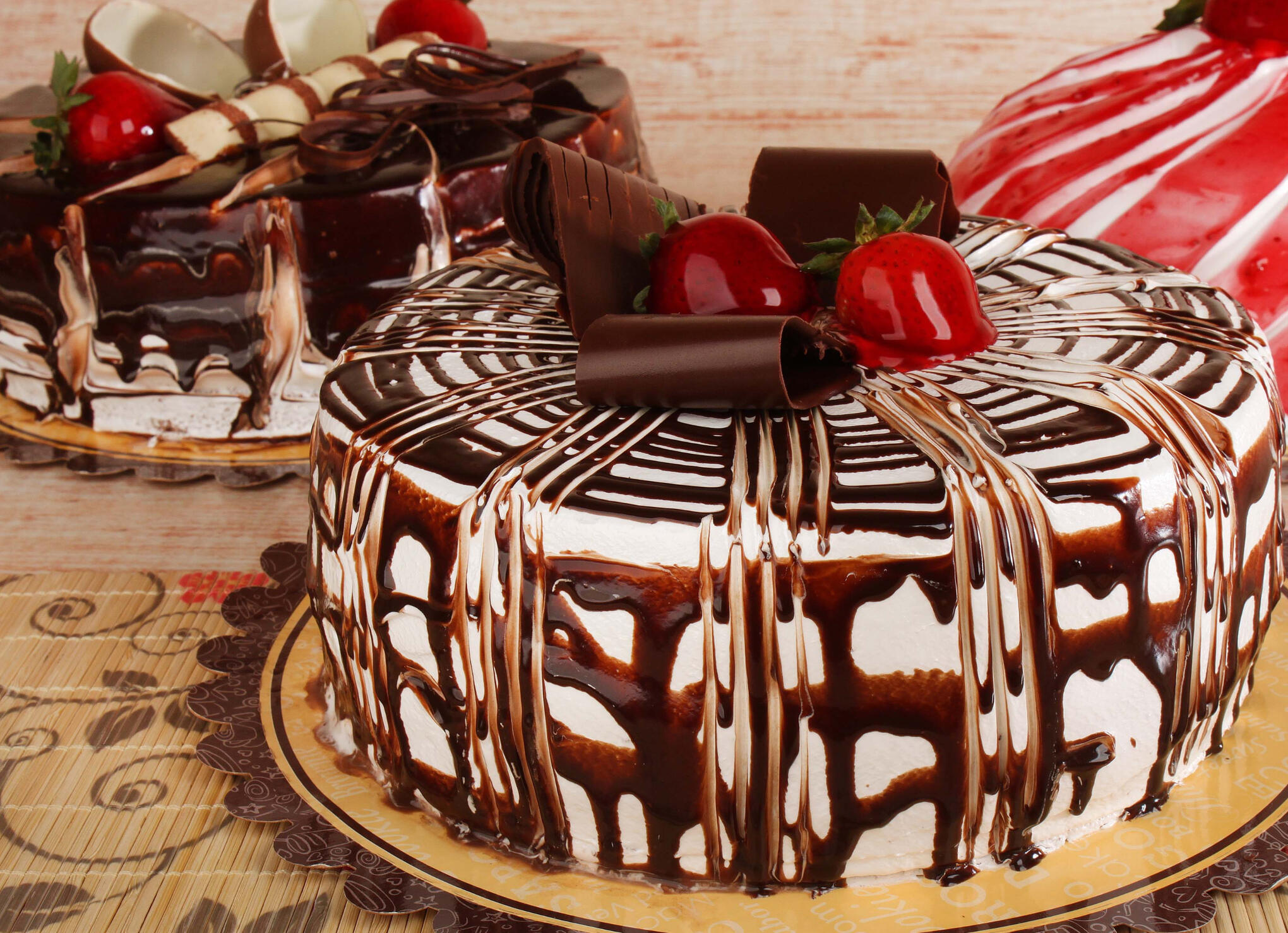 | MOUSSE DE CHOCOLATE | Pao-de-ló de Chocolate, recheado com Mousse de Chocolate, cobertura de Mousse de Chocolate Decorado com Raspas de Chocolate ao Leite, Cerejas e Morango |
